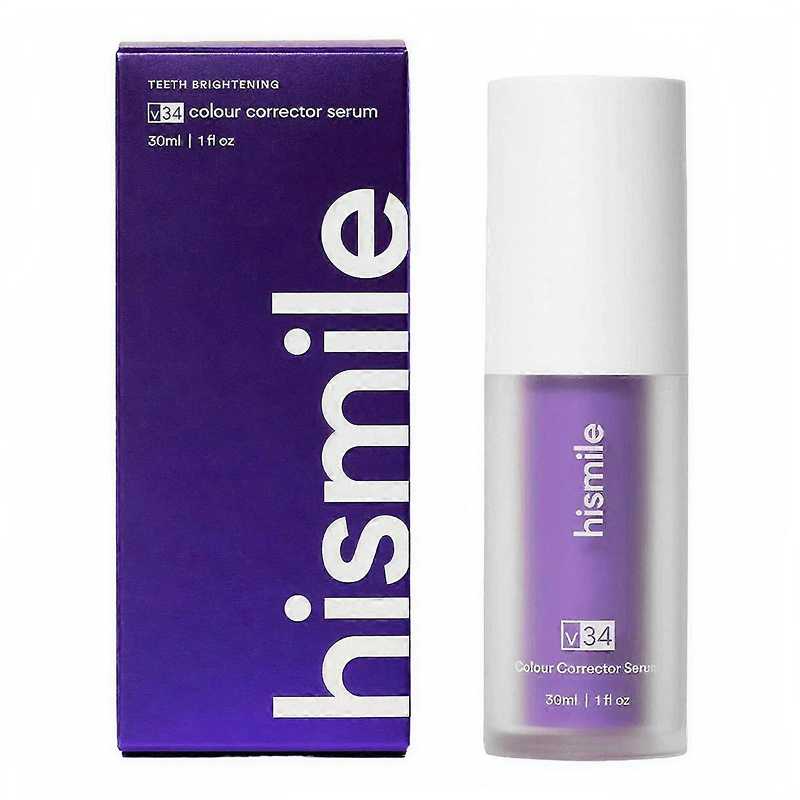 Pasta de dinti HiSmile V34 utilizeaza tehnologia pentru albire optica prin corectia culorii cu pigment violet pentru a neutraliza nuantele galbene ale dintilor. Ofera un efect vizibil de albire imediata, fara peroxid si fara sa afecteze smaltul.