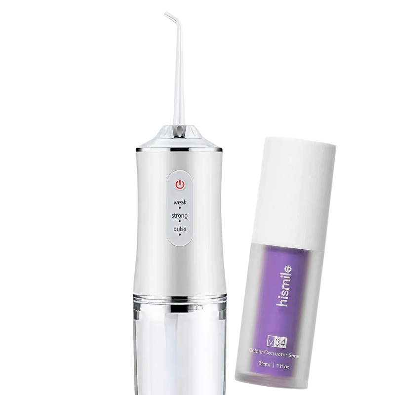 PROMO Irigator Bucal Ultra-Portabil + Pasta Albire Optică V34 | Curățare în Profunzime | Albire Imediată | Fără Peroxid